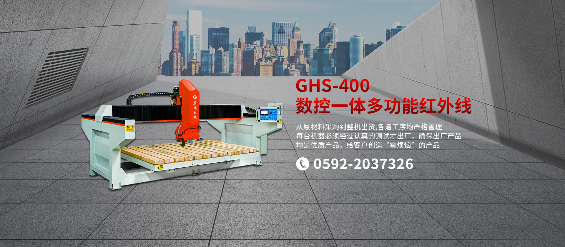 公司生產(chǎn)適用于大理石、花崗巖、砂巖、石灰?guī)r、洞石、玉石等各種石材的機(jī)械設(shè)備。主要產(chǎn)品有GHHW系列紅外線橋式切邊機(jī)、GHQQ系列橋式多片組合鋸石機(jī)、各種手動/自動/單頭/多頭板材磨拋機(jī)、以及各種異形加工設(shè)備。公司長期注重品質(zhì)管理,以質(zhì)量為中心,從原材料采購到整機(jī)出貨,各道工序均嚴(yán)格管理,每臺機(jī)器必須經(jīng)過認(rèn)真的調(diào)試才出廠,確保出廠產(chǎn)品均是優(yōu)質(zhì)產(chǎn)品,給客戶創(chuàng)造“零煩惱”的產(chǎn)品。